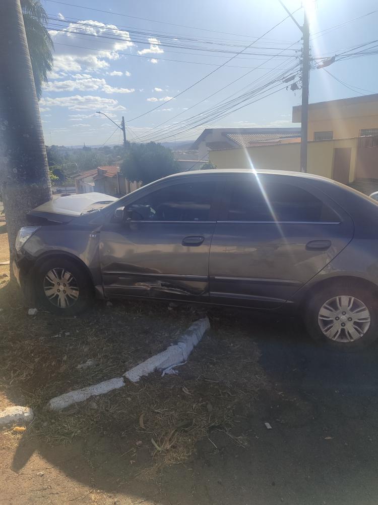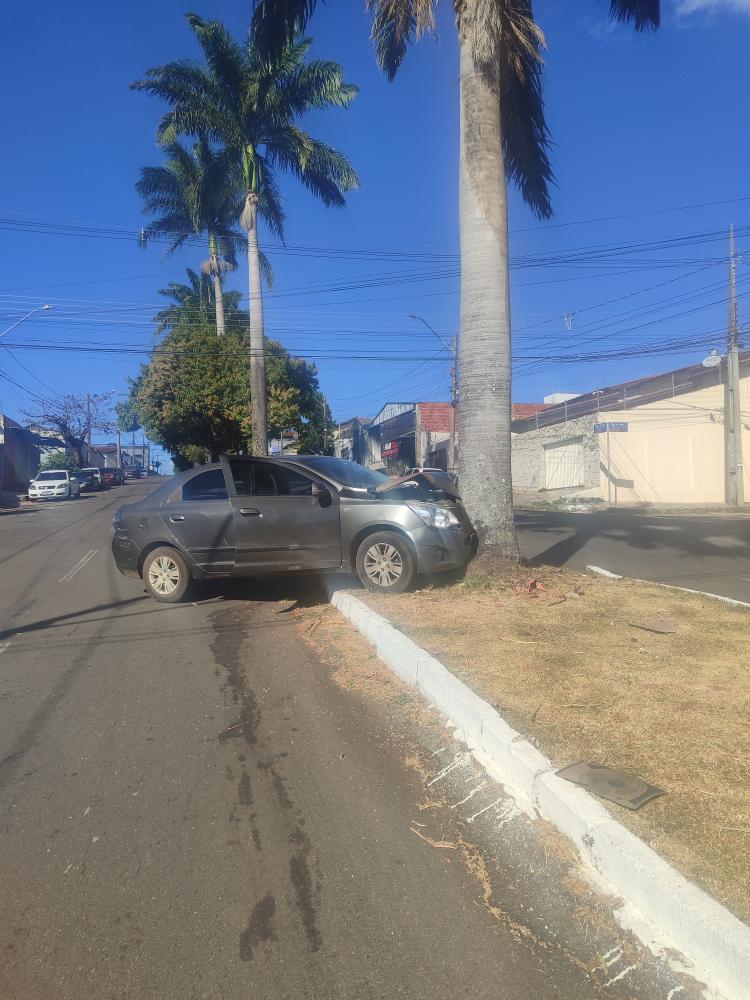 Ignorando os chamados para parar, o motorista acelerou bruscamente e, em questão de segundos, perdeu o controle do veículo, chocando-se contra uma palmeira no canteiro central da Avenida Getulino Artiaga.
