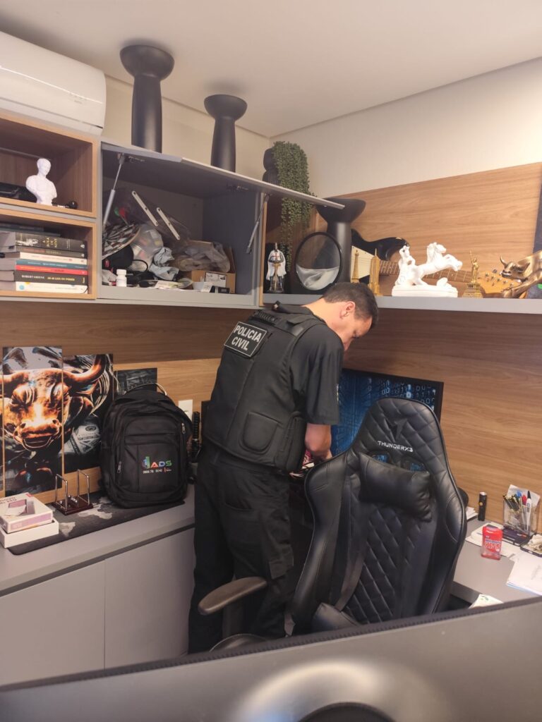 Durante as buscas, foram apreendidos dispositivos eletrônicos, contratos, registros financeiros e outros elementos que reforçam as provas da atuação criminosa.