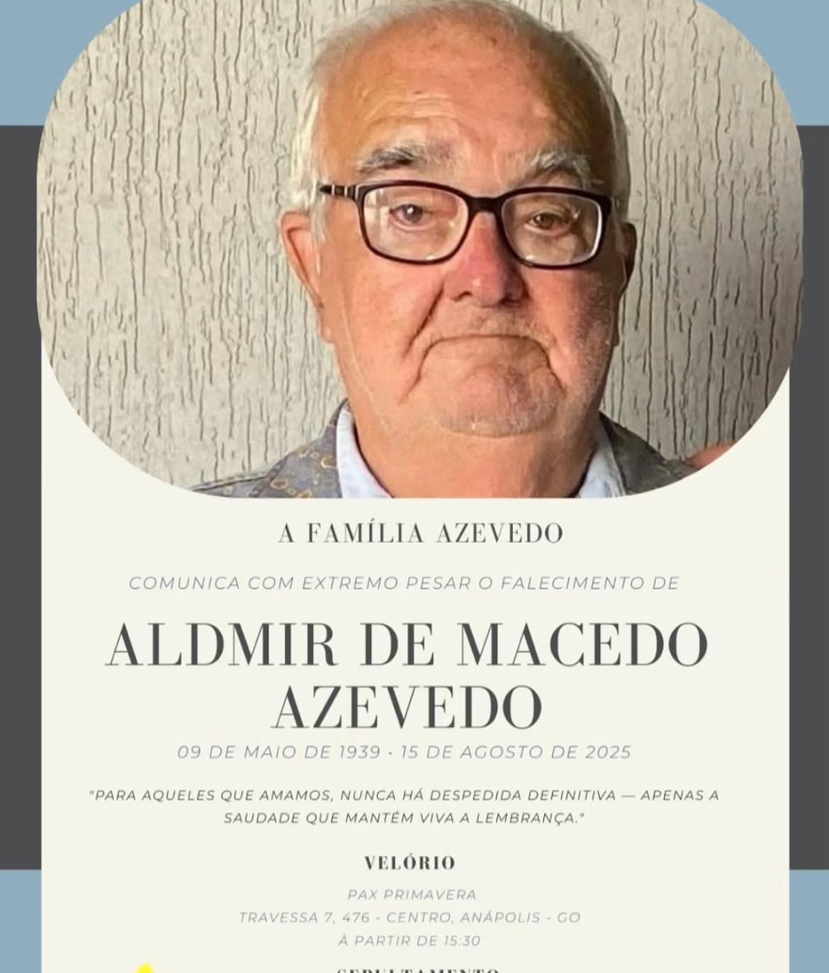 Com pesar, informamos o falecimento do Sr. Aldemir, ex-diretor da CIRETRAN de Anápolis. Pai do meu Amigo Dr. Alberto Azevedo.