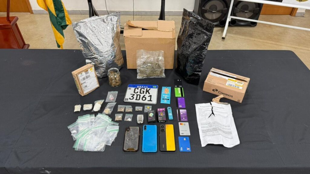 Um ponto que chamou atenção foi a apreensão de duas caixas de papelão oriundas dos Correios, acompanhadas de documentação de envio e termo de responsabilidade. Os elementos reforçam que o investigado recebia drogas por meio de serviços postais e empresas de entrega, estratégia usada para tentar ocultar a atividade criminosa e dificultar a ação policial.