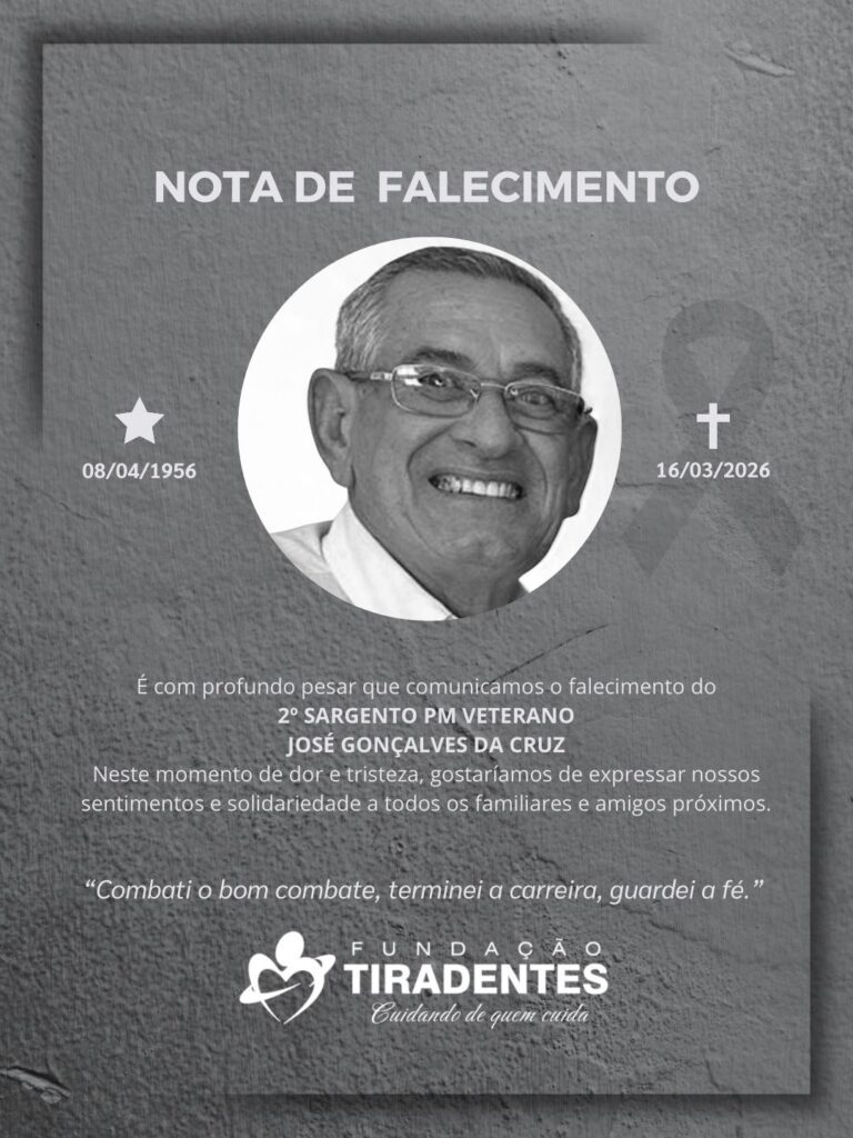 Com pesar comunicamos o falecimento do 2° Sargento PM Veterano José Gonçalves da Cruz.