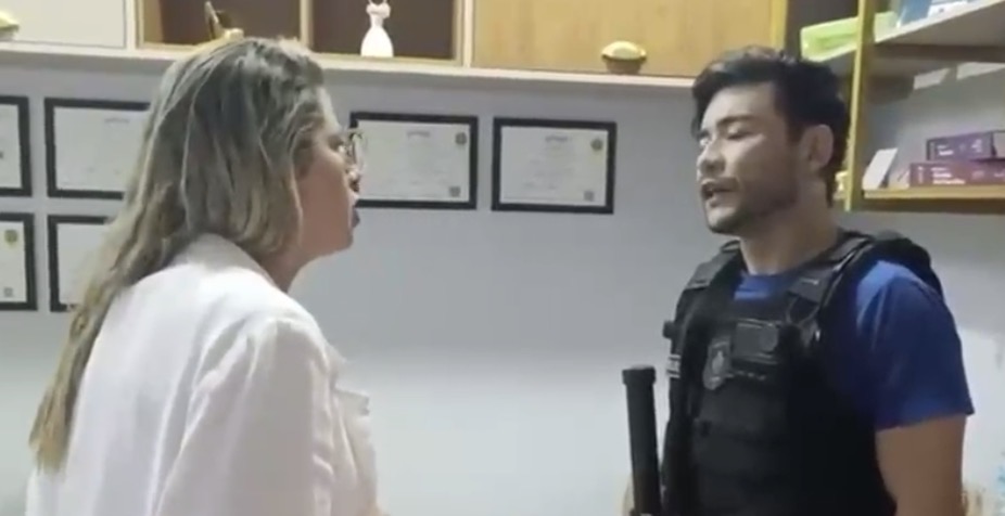 Imagens que circulam mostram o momento em que o delegado vai até o escritório da advogada e realiza a prisão no próprio local de trabalho, o que gerou ampla repercussão nas redes sociais e entre profissionais da área jurídica.